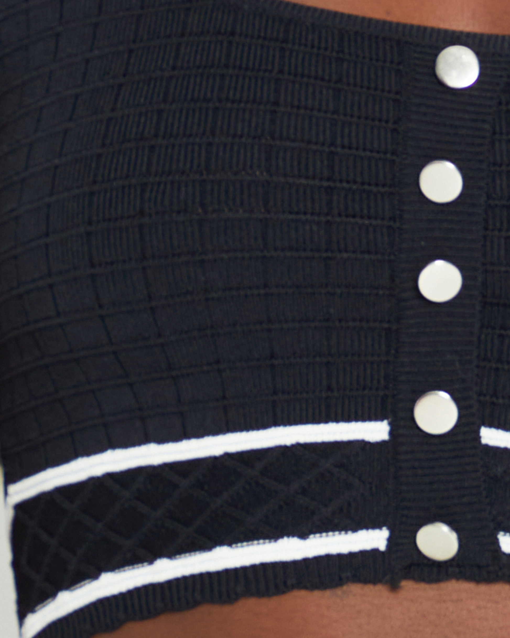 The Lea Cropped Top is a stylish choice for any ensemble. Its white trim and silver front buttons provide subtle sophistication to the adorable cropped design, while its snug fit will flatter your silhouette.