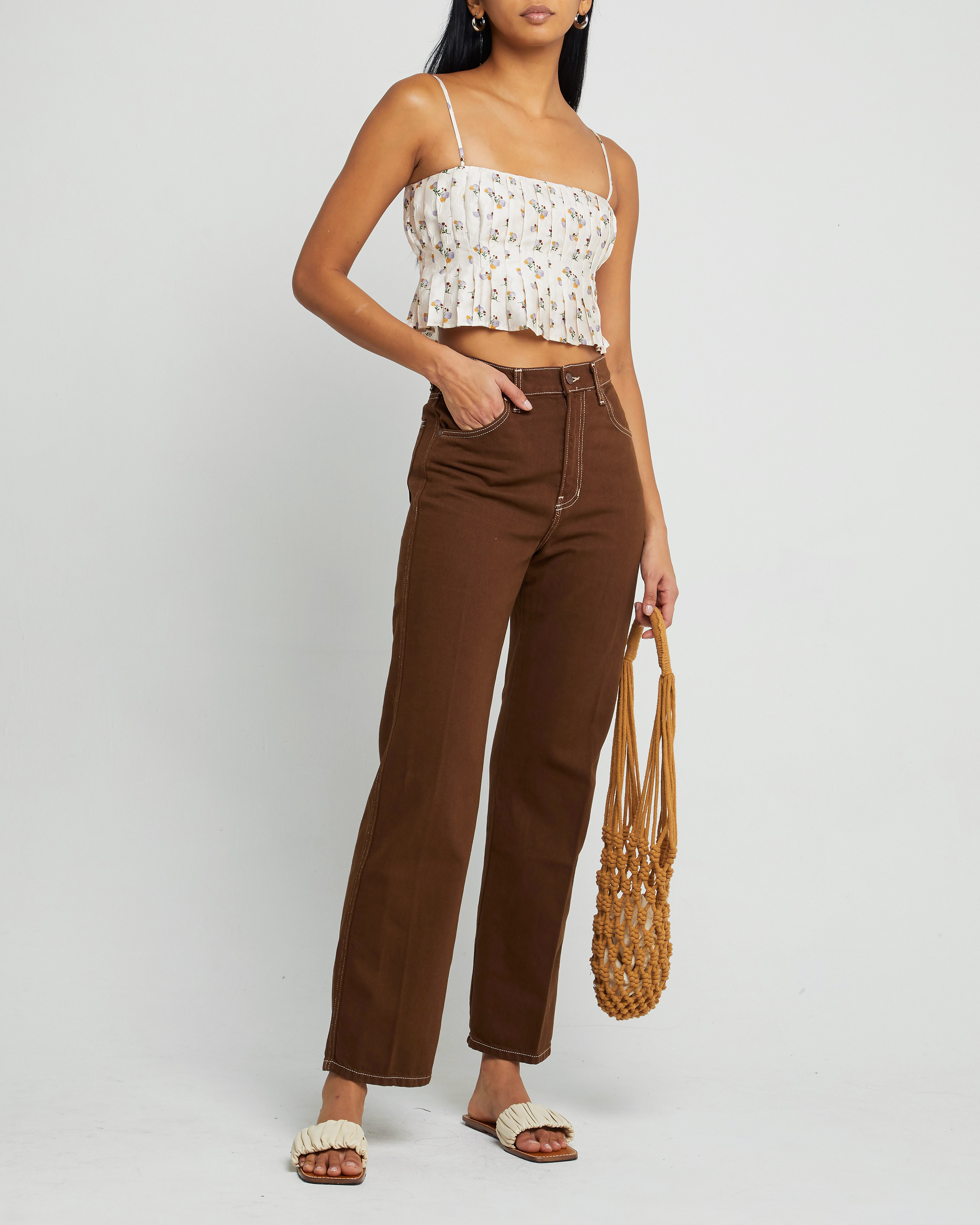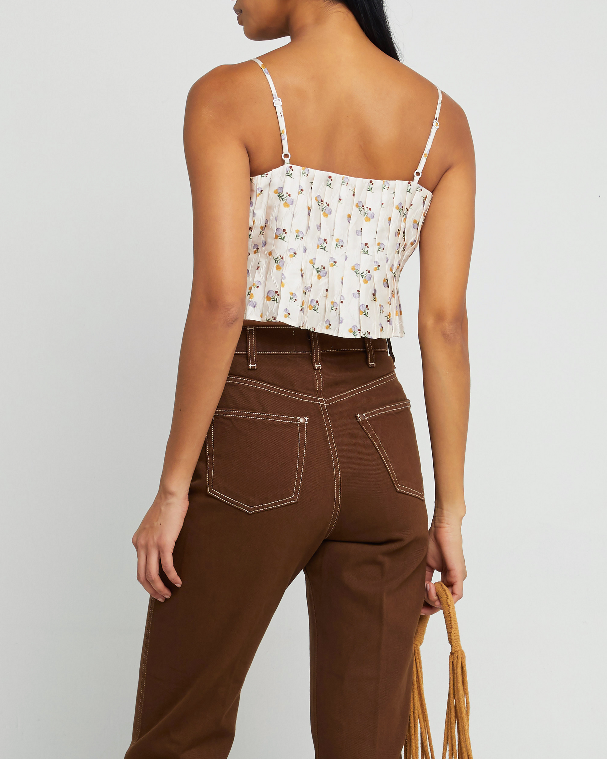 Pretty pleats define this stylish and sophisticated crop top. It pairs perfectly with your favorite high-waisted pants.